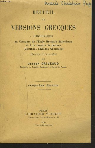 RECUEIL DE VERSIONS GRECQUES proposees au concours de l'ecole normale superieure et a la licence es lettres. Download RECUEIL DE VERSIONS GRECQUES proposees au concours de l'ecole normale superieure et a la licence es lettres. or read online here in PDF or EPUB. Please click button to get RECUEIL DE VERSIONS GRECQUES proposees au concours de l'ecole normale superieure et a la licence es lettres. PDF ePub book now. All books are in clear copy here ...